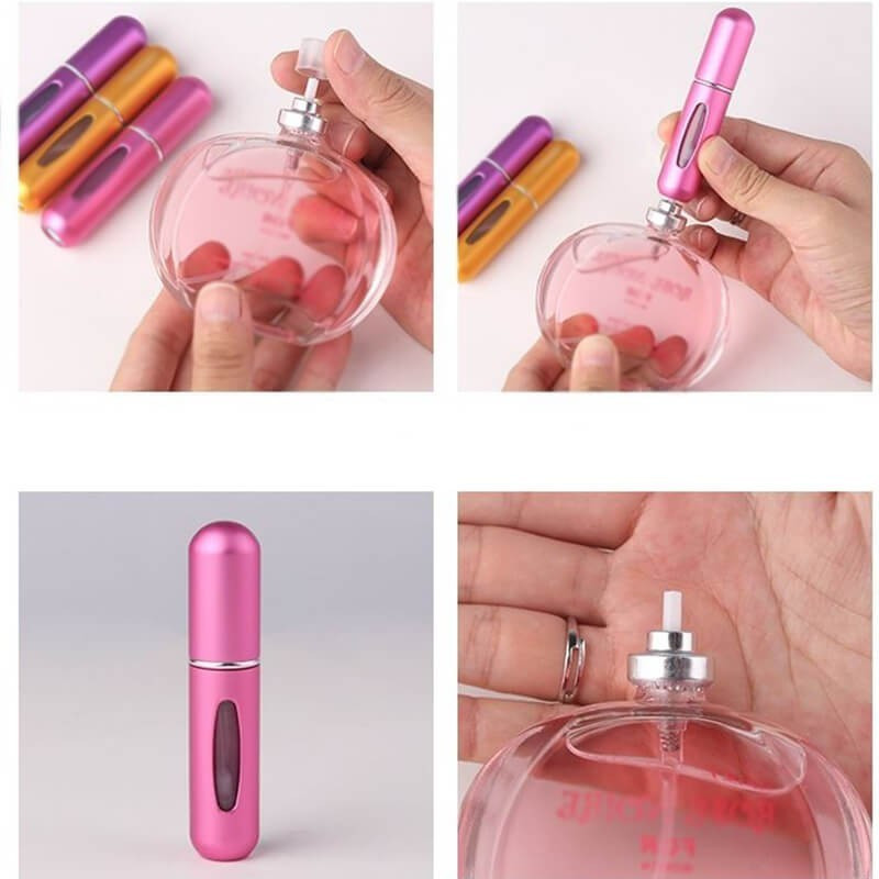 Datorită dimensiunii sale mici, pulverizatorul de parfum reîncărcabil încape în orice geantă. Este ideal pentru călătorii, mai ales dacă zbori cu avionul, deoarece acolo îți pot impune cât lichid poți avea în bagajul de mână!