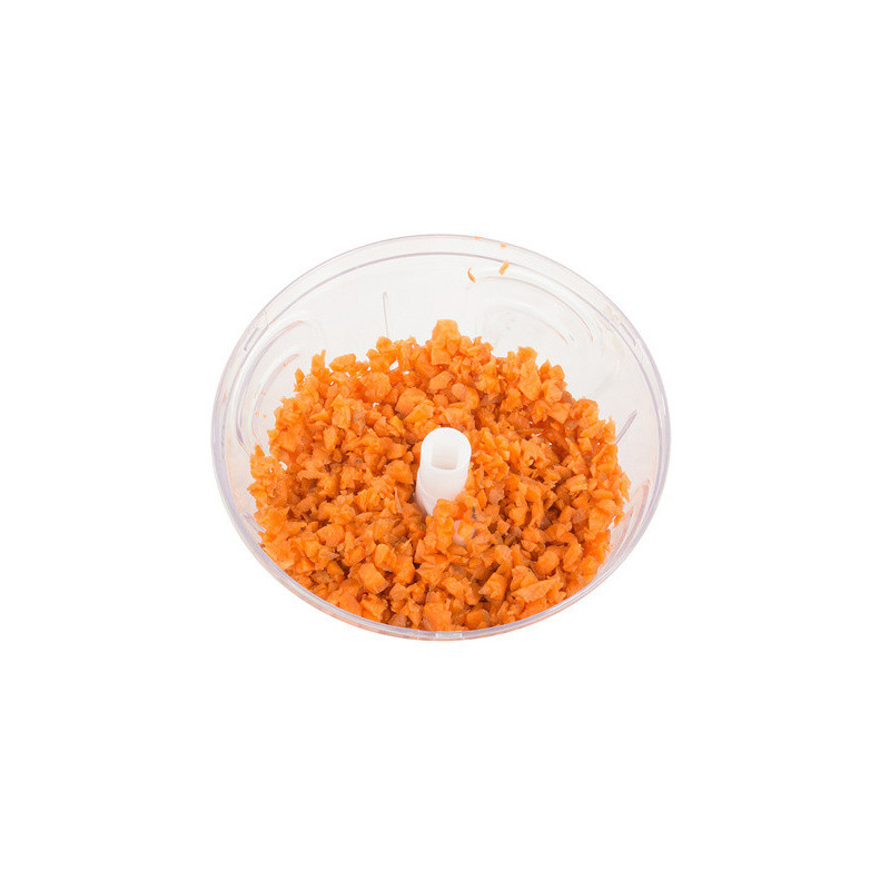 Răzătoarea de legume și fructe este un instrument indispensabil în orice bucătărie și în locuri unde accesul la o sursă de energie constantă este limitat, cum ar fi în timpul campingului. Datorită mecanismului inovator, dar simplu, poți toca rapid legume, fructe, nuci și ierburi aromatice. Utilizarea tocătorului este foarte simplă. Trăgând de sfoară, pornești lamele care toacă rapid și precis legumele sau fructele pentru salatele, sosurile, supele tale preferate etc. Unitatea este echipată cu un recipient de 400 ml și trei lame din oțel inoxidabil.