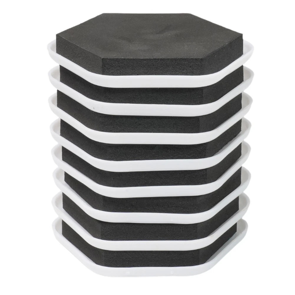 • Suprafață antiderapantă: Stratul moale de spumă de pe partea superioară a discurilor menține stabil piciorul mobilierului, astfel încât obiectul nu alunecă de pe disc în timpul mutării.