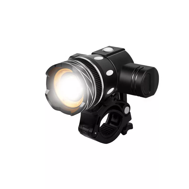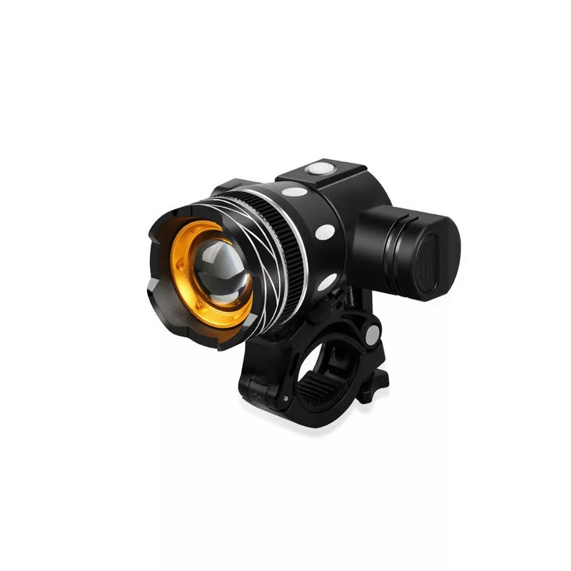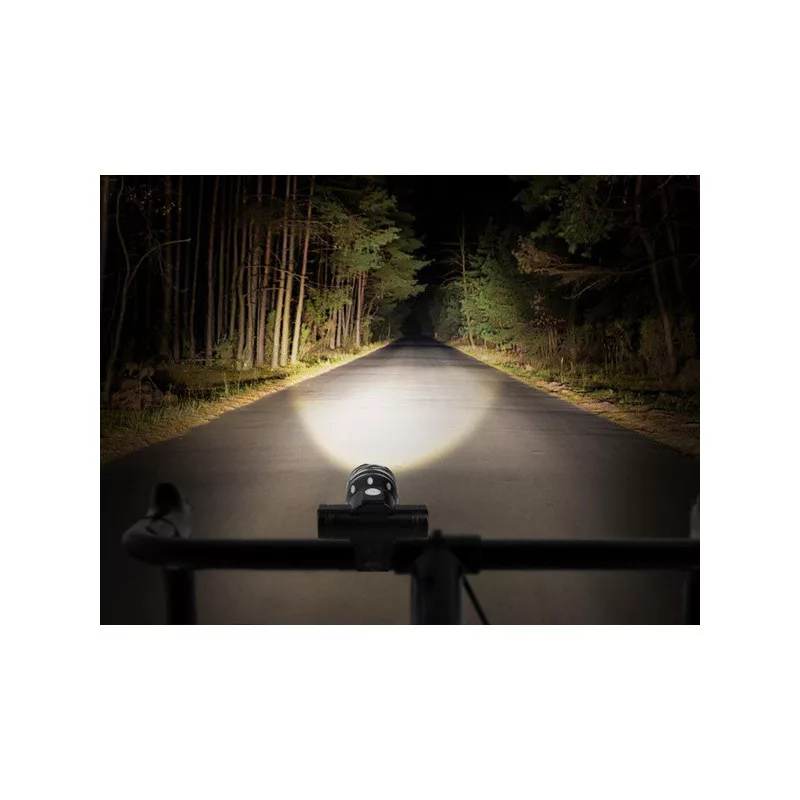 Lampa frontală este echipată cu o lentilă cu unghi reglabil, astfel încât să poți ajusta iluminarea în funcție de condițiile drumului. Schimbă direcția în funcție de terenul pe care te afli, pentru a vedea mai bine și a evita orbirea altor participanți la trafic.