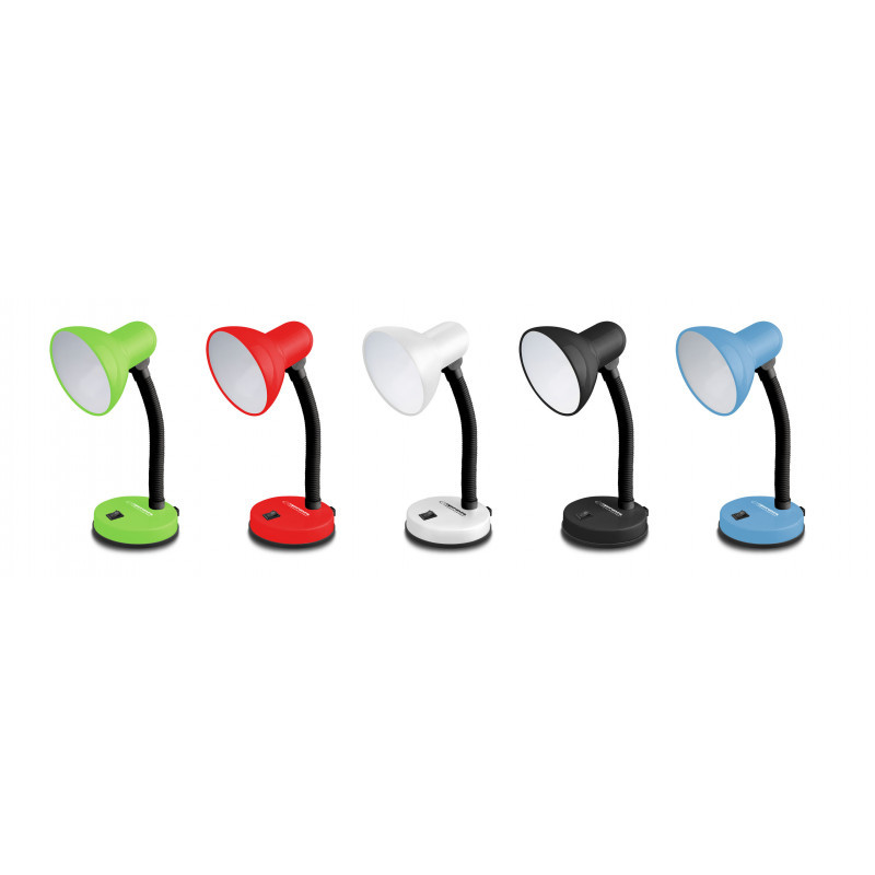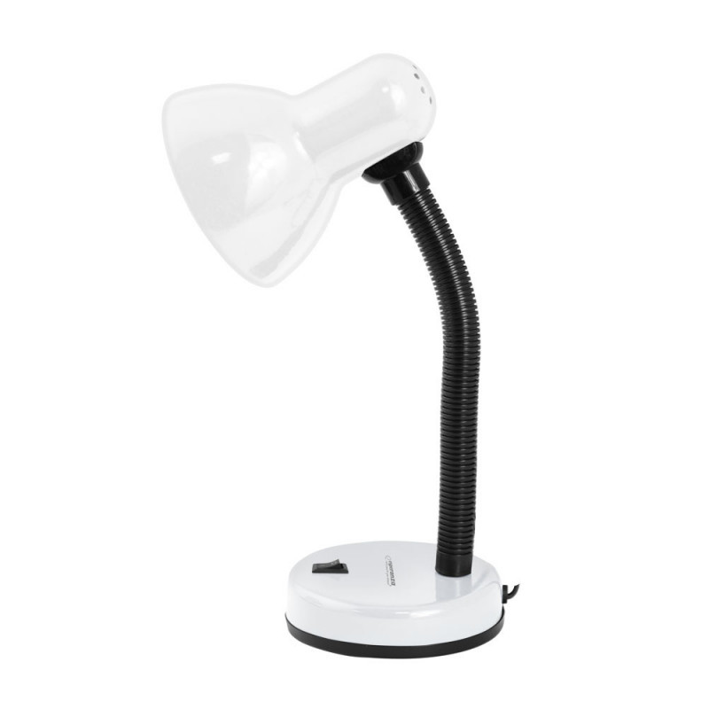 Lampă de birou cu bază mare și stabilă. Brațul flexibil îți permite să ajustezi lampa la orice unghi dorești. Lampa poate fi echipată cu becuri LED, având soclu E27 și o putere de până la 12W.