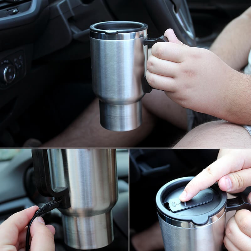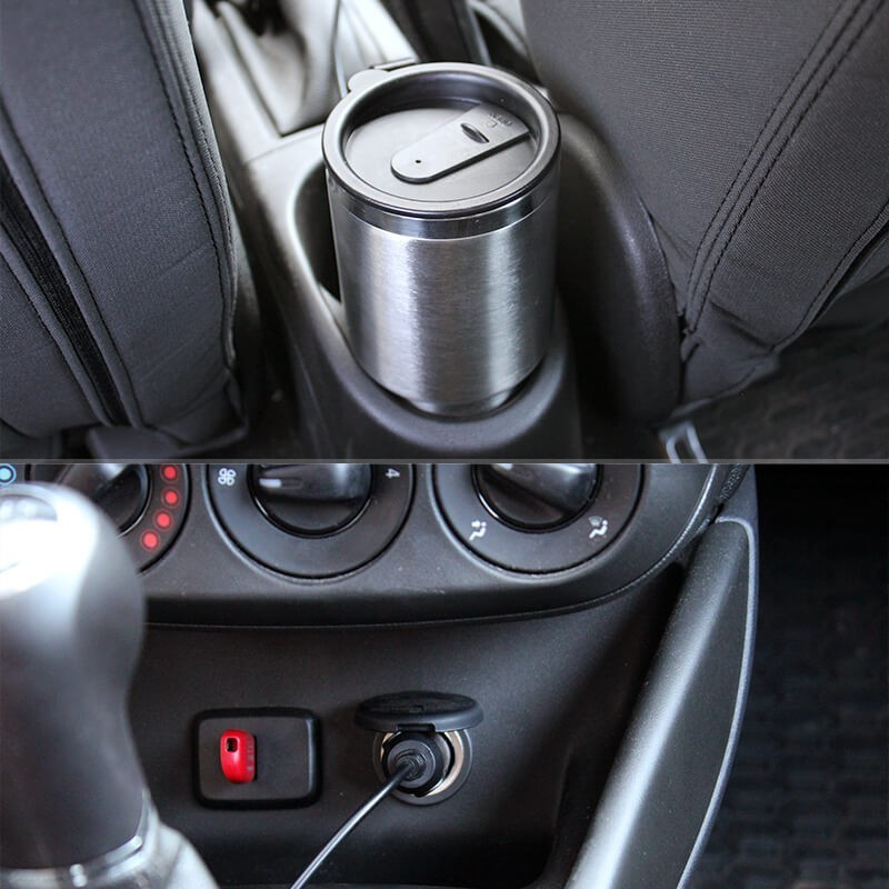 Produsul funcționează de la bricheta auto, deci este compatibil cu orice mașină. Nu trebuie să te chinui cu butoane de pornire și baterii, doar conectează-l și începe să încălzească. Corpul său din oțel și funcția de termostat încorporată asigură că poți savura băutura preferată fierbinte oriunde.