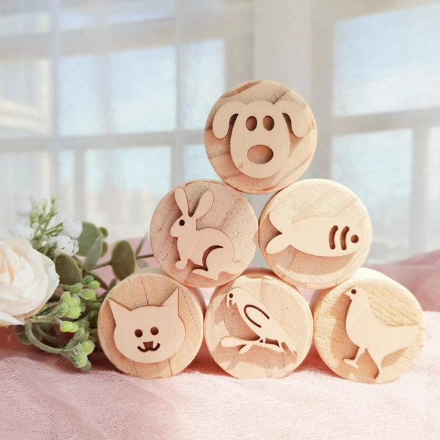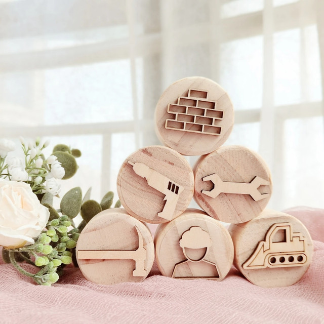 Materialul ștampilelor este lemn rezistent, cu ajutorul căruia micul creator poate realiza rapid modele adorabile.