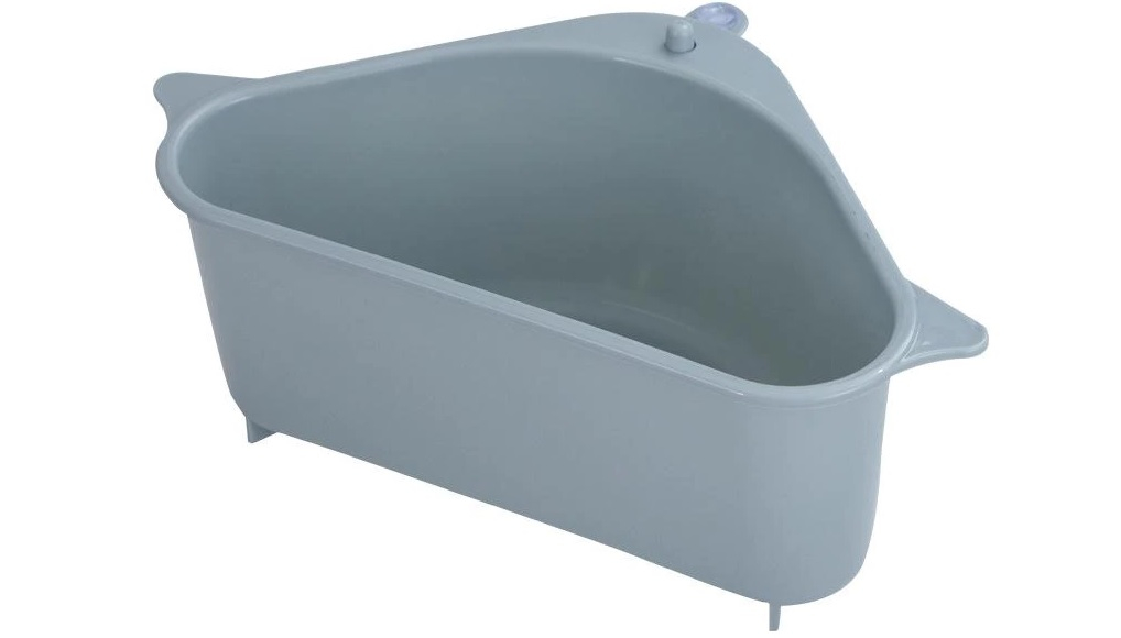 Datorită formei sale, se potrivește perfect în colțul majorității chiuvetelor, fără a ocupa spațiu valoros în interiorul cuvei. Ventuza sa permite fixarea pe orice suprafață netedă fără a fi nevoie de găurire sau lipire. Ventuza ține excelent, fiind foarte rezistentă. La baza produsului se află un filtru care ajută la scurgerea rapidă a apei, astfel încât nu trebuie să îți faci griji că apa se va acumula în interiorul recipientului.