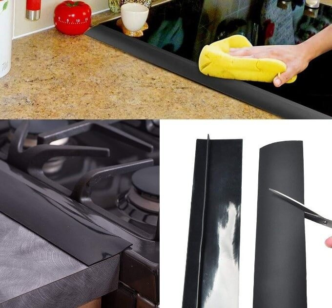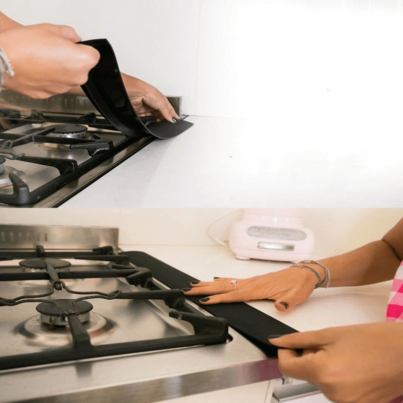 Această margine de protecție din silicon se potrivește perfect între blat și aragaz, prevenind pătrunderea resturilor de mâncare.