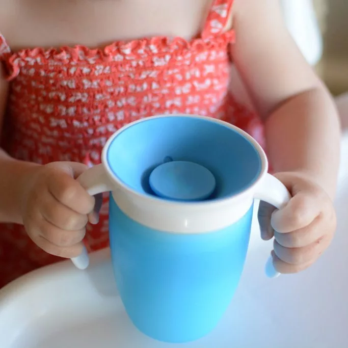 Dacă ai încercat vreodată să-i dai copilului tău să bea câteva înghițituri dintr-un pahar, ai observat probabil că imediat vrea să țină paharul singur. Dar, desigur, încă nu știe cum să folosească un pahar, așa că ușor poate să-și verse băutura pe gât.