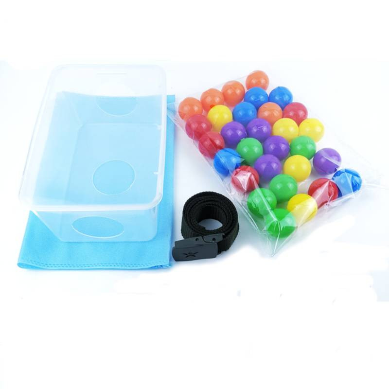 Desfășurarea jocului: Prinde-ți o cutie plină cu bile și sari până când toate bilele colorate ies din cutia ta.