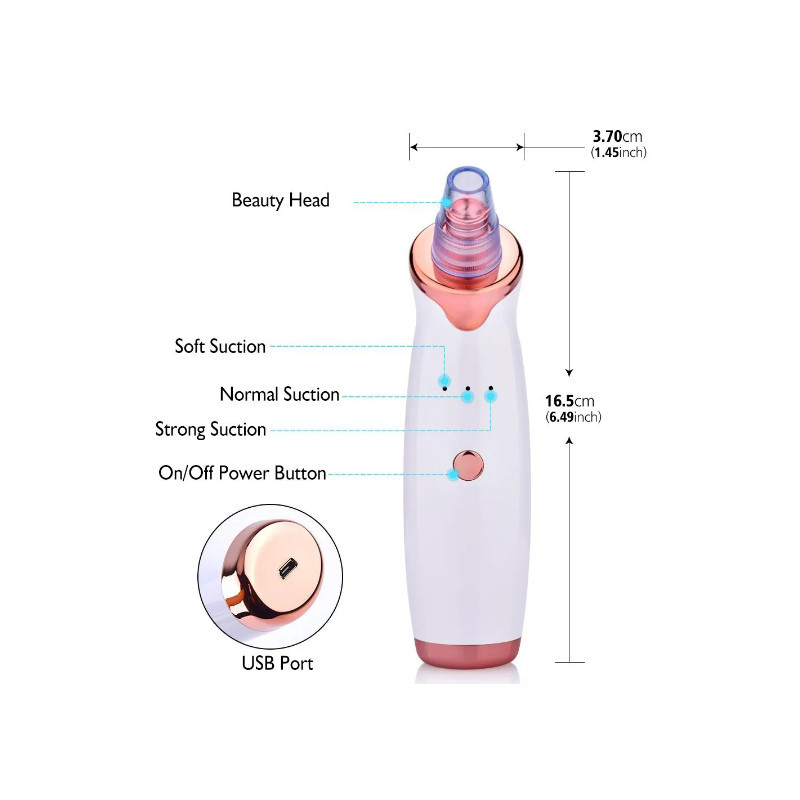 Avem o soluție pentru tine! Aparatul de curățare facială cu aspirare pentru puncte negre este alegerea perfectă pentru tine, cu care fața ta va străluci. Îți poți curăța fața confortabil acasă, în timp ce te uiți la un film. Aparatul aspiră punctele negre, curăță porii și elimină impuritățile.