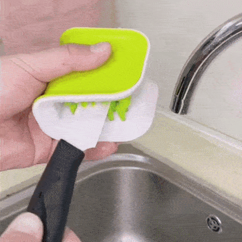 Curățarea alimentelor de pe cuțite și tacâmuri ascuțite poate fi o sarcină periculoasă, dar nu pentru tine! Cu această perie de spălat inovatoare, poți face spălarea mult mai sigură.