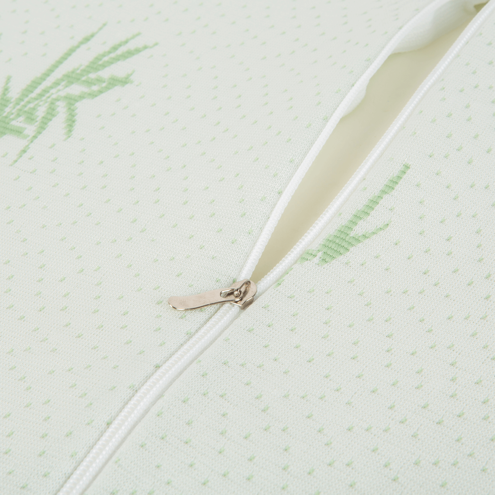 Dacă și tu te confrunți dimineața cu dureri de spate și gât, probabil că nu folosești perna potrivită! Această pernă, datorită materialului său din spumă cu memorie, își recâștigă mereu forma inițială, adaptându-se astfel poziției de somn. Designul pernei oferă un suport uniform, relaxează mușchii gâtului și coloana vertebrală, astfel încât să te trezești odihnit dimineața. Datorită poziției confortabile și sănătoase, reduce probabilitatea apariției sforăitului. Fibrele de bambus îi conferă o textură mătăsoasă, o senzație de răcoare și proprietăți excelente de respirabilitate.