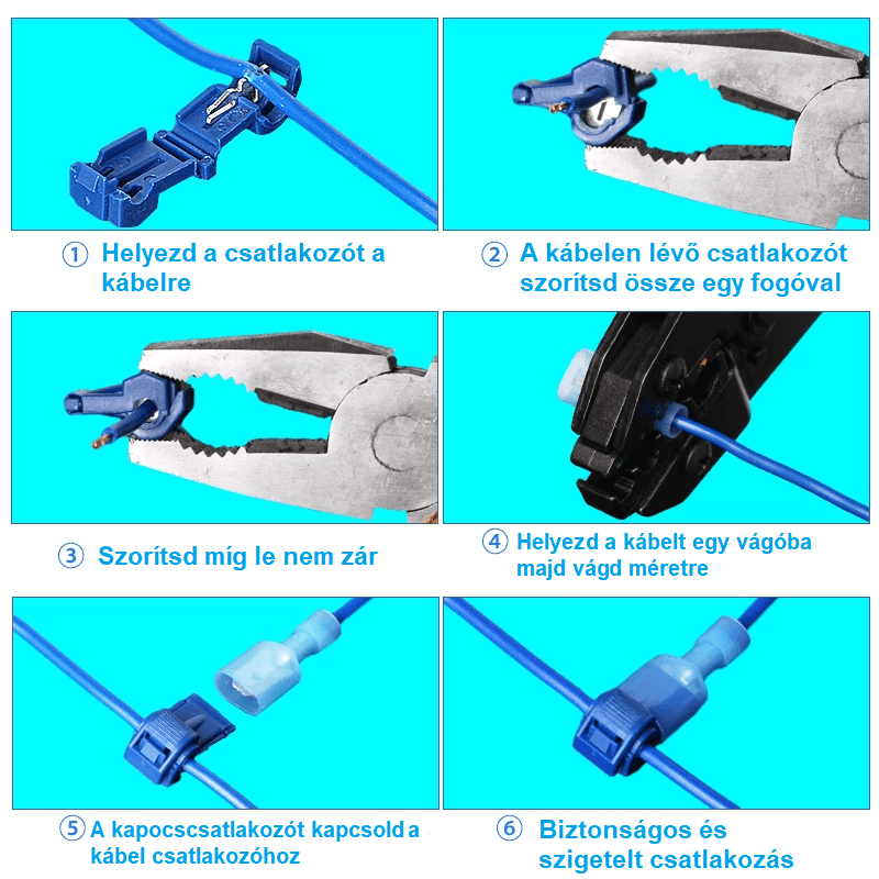 De acum nu mai trebuie să îți faci griji pentru legăturile complicate ale cablurilor. Nu mai trebuie să le sudezi, tai sau dezizolezi. Cu acest produs, îți faci treaba nu doar în siguranță, ci și rapid.
