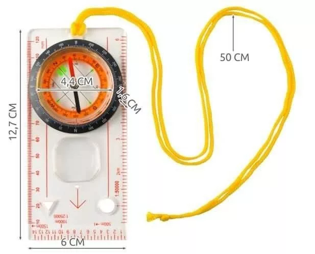 Cu ajutorul acestui produs, copiii pot învăța să măsoare direcția și distanța pe hartă. Este echipat cu un șnur pentru a fi purtat la gât, prevenind pierderea acestuia. Compasul te ajută să stabilești unde este nordul, deoarece funcționează pe baza magnetismului Pământului.
