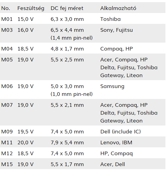 Mărcile suportate de conectori: ACER, Sony, DELTA, IBM, DELL, Compaq, HP, Liteon, Toshiba, Fujitsu, Gateway, Lenovo, Samsung