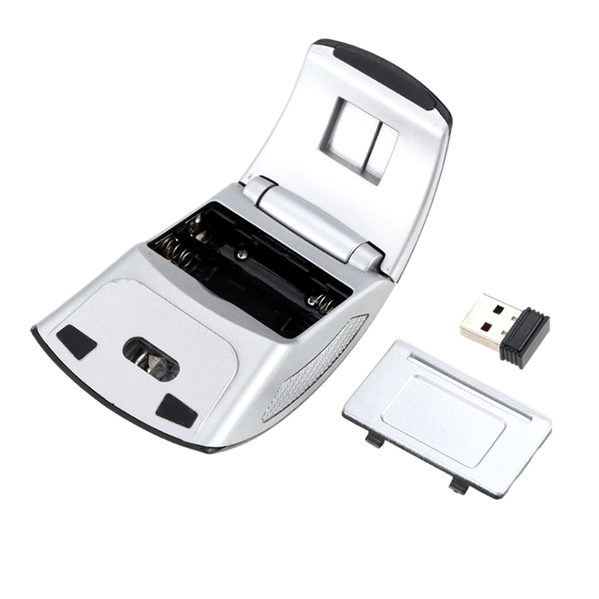 Acest mouse a fost proiectat astfel încât să-l poți plia atunci când nu îl folosești, economisind astfel până la 40% din spațiu. Funcționează cu 2 baterii AAA, iar pentru conectare trebuie doar să introduci dongle-ul inclus într-un port USB al dispozitivului tău. Când nu este utilizat, dongle-ul poate fi plasat în mouse, astfel încât să nu-l pierzi în timpul transportului.