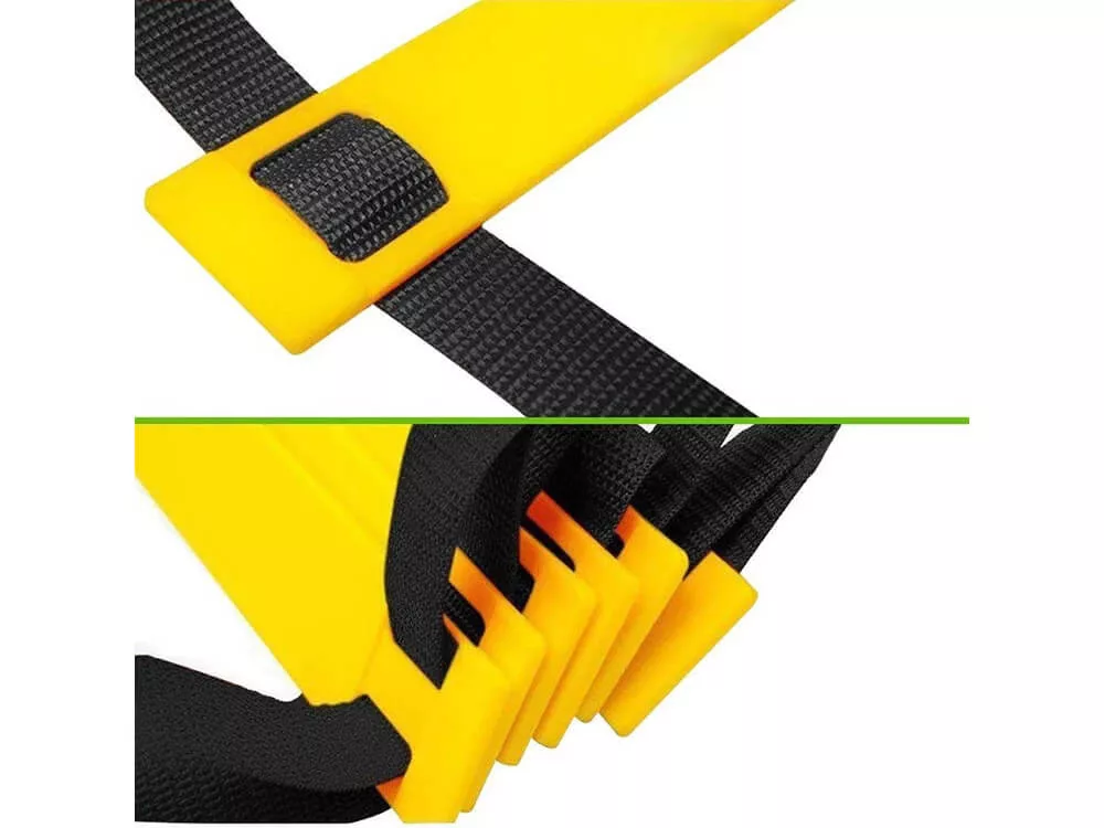 Poți folosi scara atât în interior, cât și în exterior, așa că indiferent de vreme, antrenamentul nu trebuie să lipsească! Cu ajutorul acestei scări de antrenament, îți poți îmbunătăți viteza, agilitatea și coordonarea mișcărilor. Este un instrument util atât pentru sportivii profesioniști, cât și pentru amatori. Poți seta distanța dintre treptele scării de antrenament, astfel încât să aduci mereu o schimbare antrenamentului tău. Cu geanta de transport inclusă, o poți lua cu tine oriunde.
