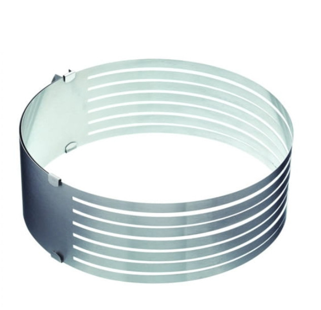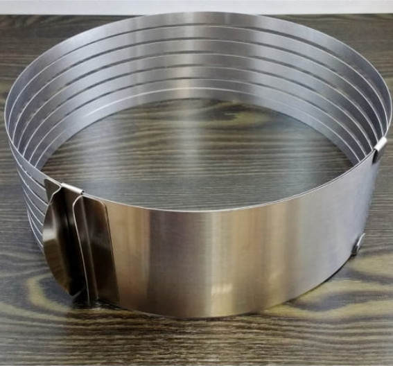 Achiziționează forma noastră, cu care poți tăia prăjiturile în straturi perfecte în doar câteva clipe! Datorită dimensiunii ajustabile, este ideală pentru a tăia torturi mai mici sau mai mari. Este fabricată din oțel inoxidabil de calitate, asigurând o utilizare pe termen lung.