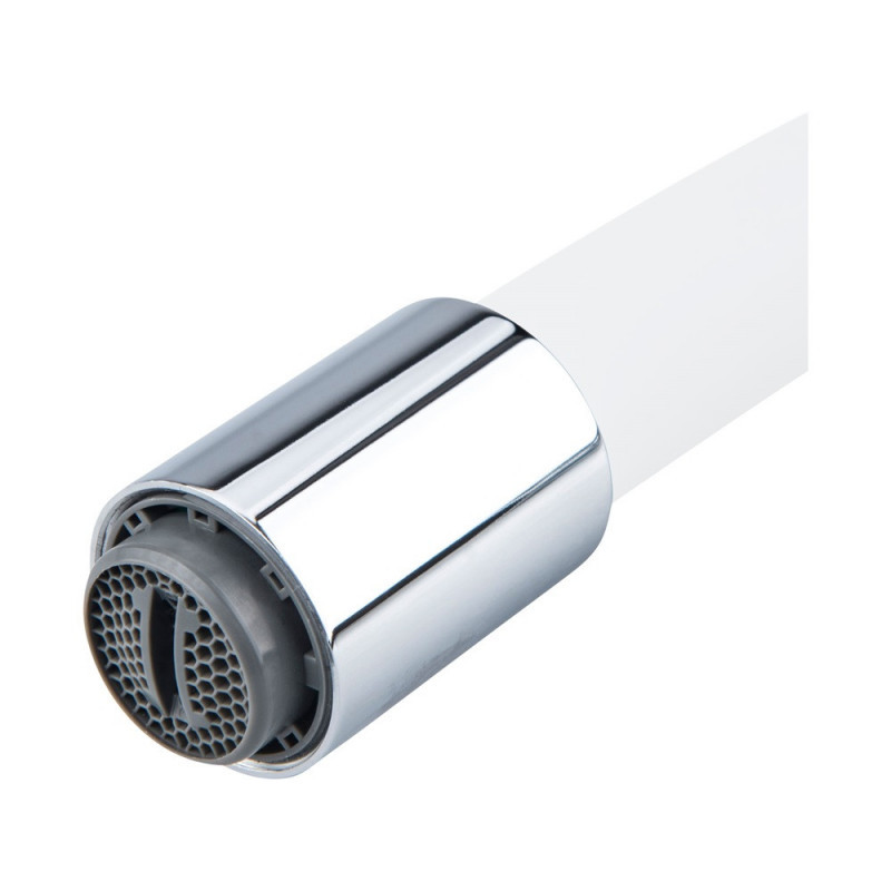 Bateriile de bucătărie (chiuvetă) din seria Balletto, modelul 8112X, sunt echipate cu un tub flexibil de silicon cu culoare la alegere. Tubul de scurgere poate fi schimbat ușor cu unul de altă culoare. Perlatorul NEOPERL® economisitor de apă este inclus în accesoriile bateriei.