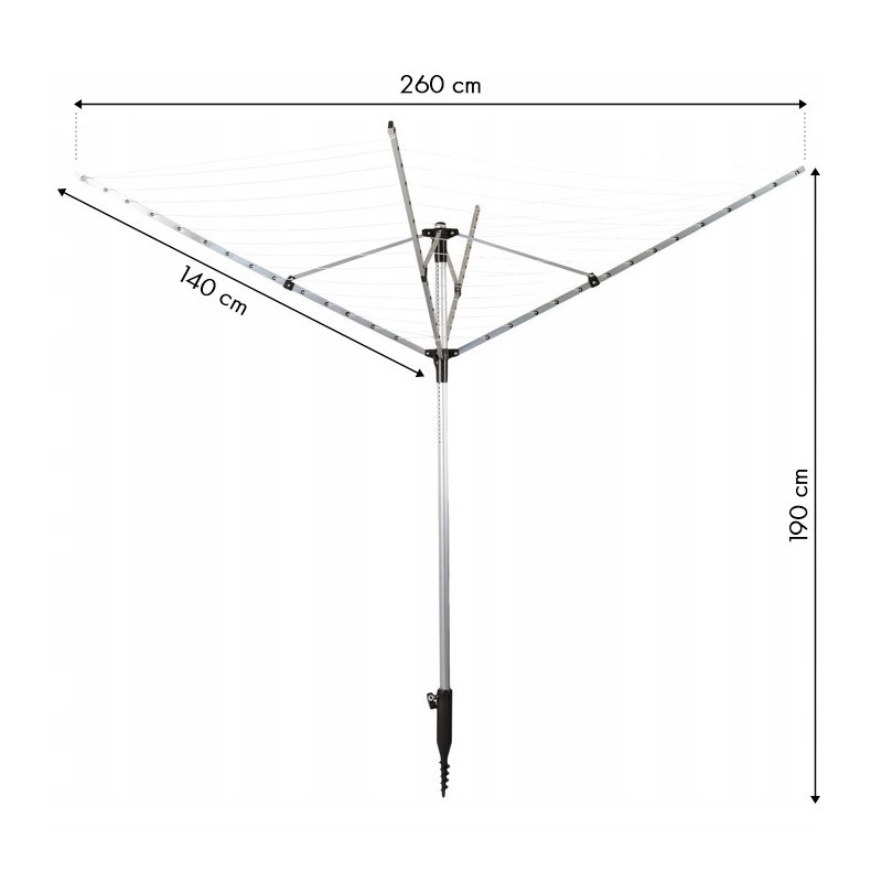 Uscător de rufe de grădină 260 cm + capac cu șurub