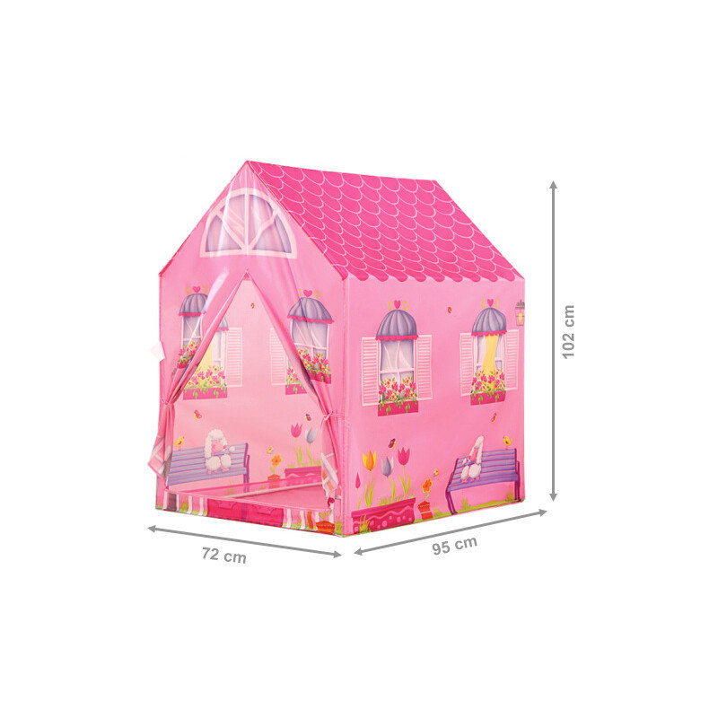 Forma produsului seamănă cu o casă roz - are o structură de acoperiș. Caracterul său se potrivește perfect atmosferei unei camere de fetiță și va fi distractiv pentru jocurile cu prietenii. Cortul este practic și ușor de asamblat. Datorită cadrului său ușor poate fi mutat cu ușurință dintr-un loc în altul.