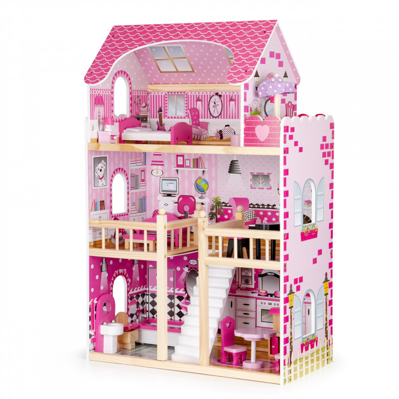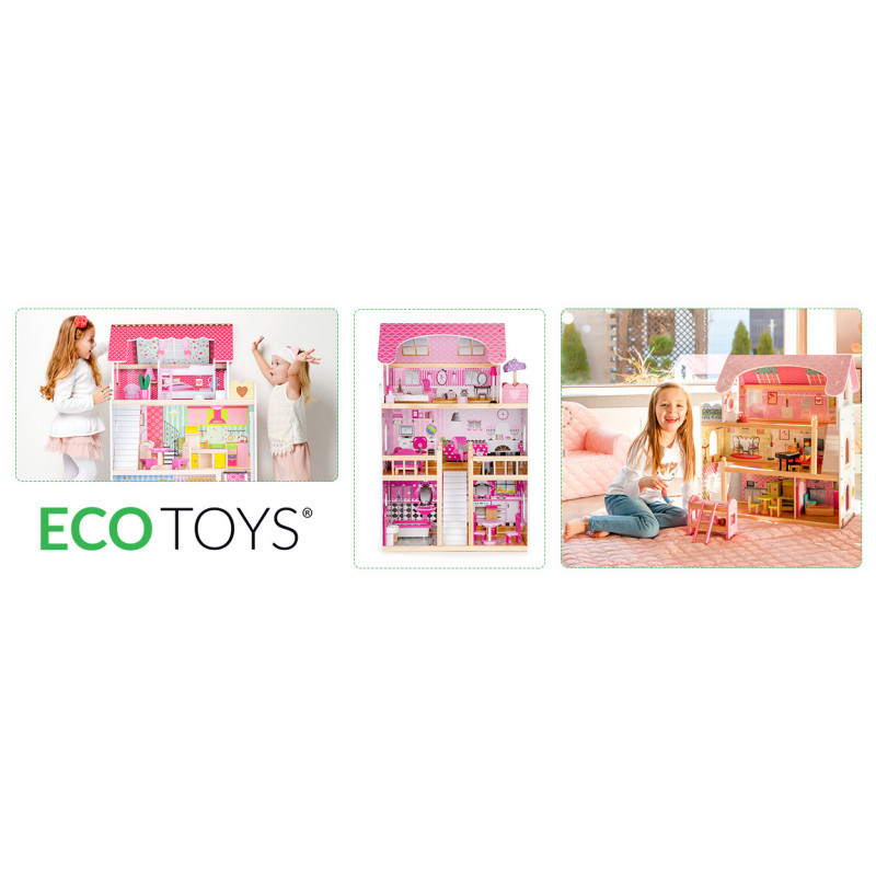 Casă de păpuși cu LED-uri - ECOTOYS - pentru copii și adulți - mobilier luminos - joc creativ