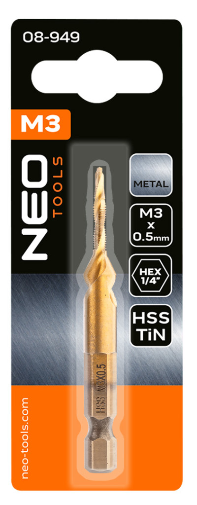 NEO TOOLS Taraud mecanic, 2în1 cu margine de pre-găurire, HSS-Titan, M3X0,5mm, coadă hexagonală 08-949