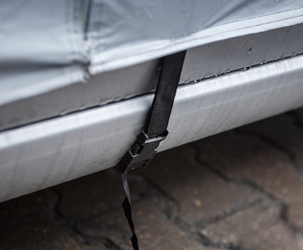 Husă auto multistrat NEO. O prelată impermeabilă de 4,3 x 1,6 x 1,2 m. Fabricată din material PEVA impermeabil și bumbac. Are un sistem practic de prindere în partea de jos care împiedică răsucirea și o deschidere pentru ușă pentru acces rapid la vehicul. Prelata este proiectată pentru utilizare în exterior, protejând mașina de diverse condiții meteorologice nefavorabile. Datorită genții incluse, poate fi depozitată cu ușurință. Marca NEO este recomandată tuturor pasionaților de automobile.