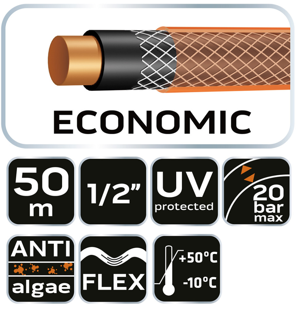 NEO TOOLS Furtun de grădină 1/2"x50 m, 4 straturi ECONOMIC 15-802