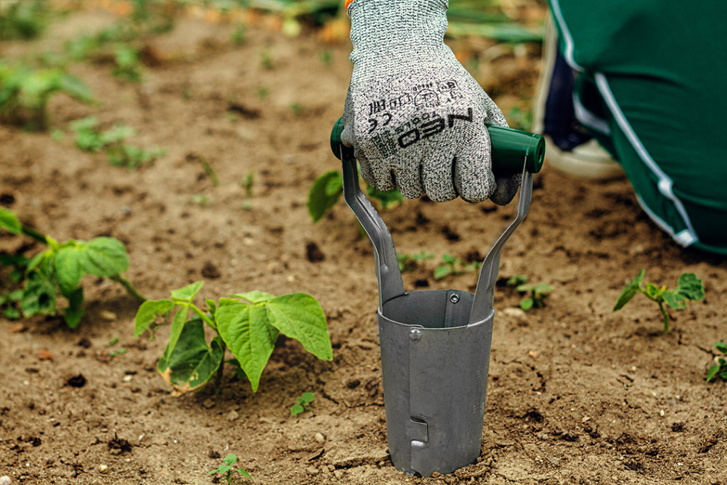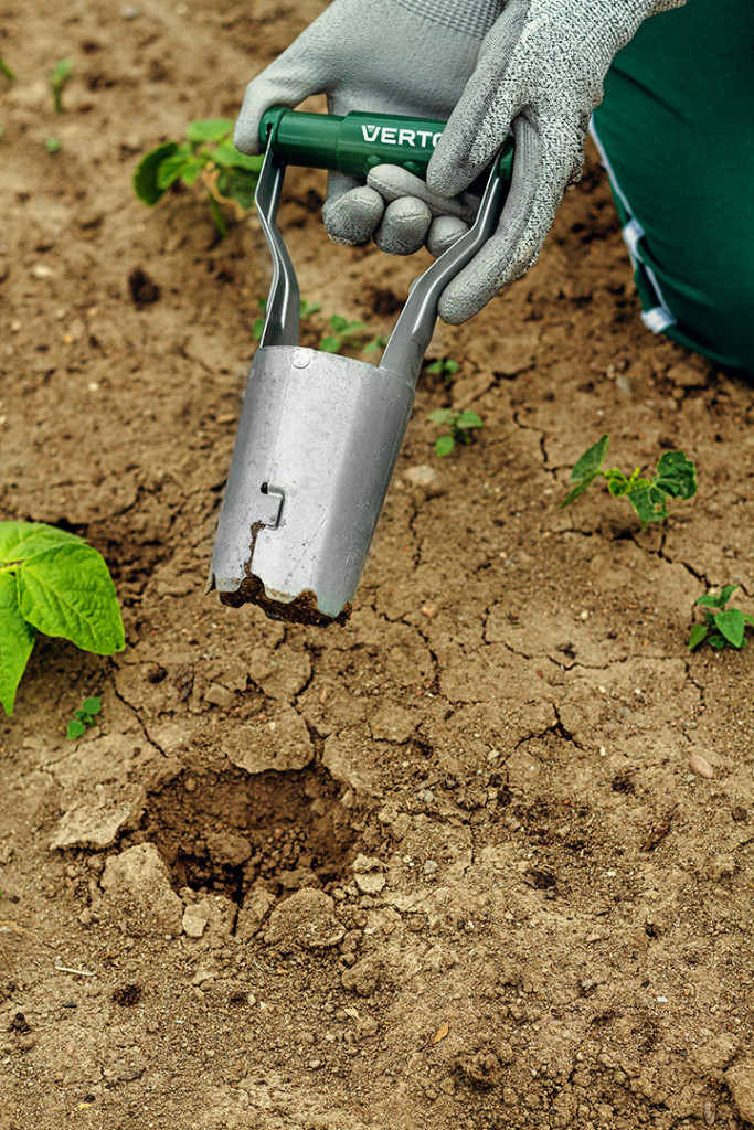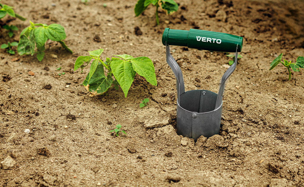 VERTO 15G426 plantator manual, cu arc. Structura mobilă îți permite să prinzi butașii și să îi plasezi exact acolo unde dorești. Partea de lucru este realizată din oțel galvanizat A3, iar mânerul mobil este fabricat din PP. Construcția robustă din oțel și zinc, legată cu nituri, asigură o durată lungă de viață. Diametrul maxim de lucru de 60 mm permite utilizarea universală pentru diverse plante, iar lungimea totală de 235 mm asigură o utilizare confortabilă. Scala specială de adâncime de pe partea exterioară te ajută să plasezi bulbii și rădăcinile la adâncimea dorită.