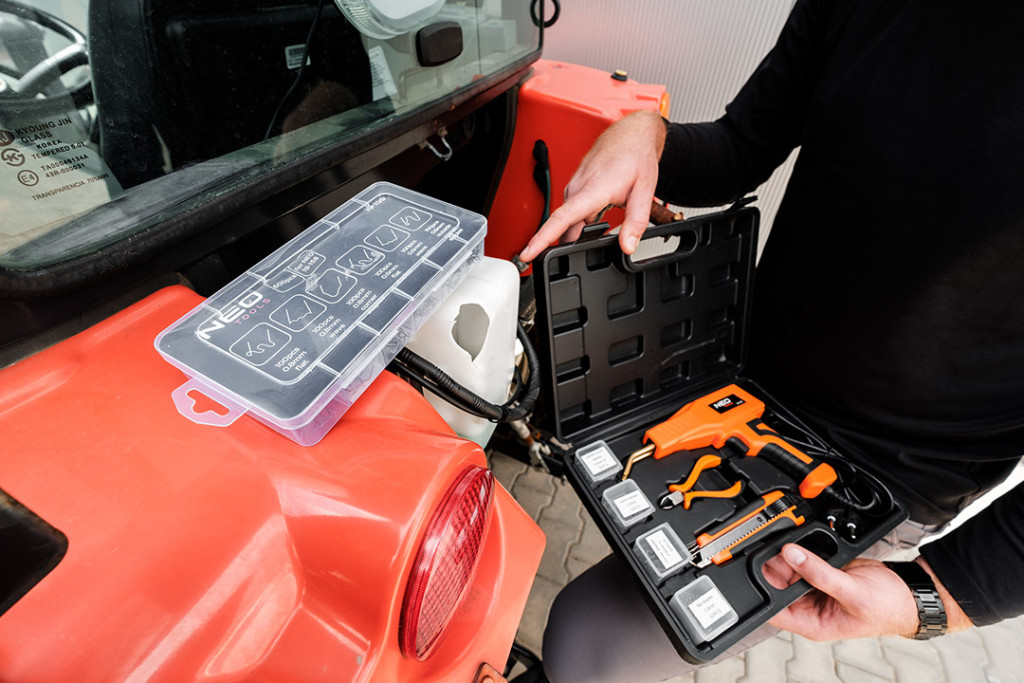 A NEO TOOLS setul de lipit din plastic de 50 W + 200 de capse 19-158 este un kit practic, care include un pistol de lipit din plastic de 50 W, 200 de capse în 4 tipuri, un cuțit de 18 mm cu lamă ruptibilă, un clește de precizie de 110 mm și o husă pentru transport și depozitare ușoară. Pistolul de lipit NEO TOOLS este adaptat la o tensiune de 230 V 50 Hz. Are un cablu cu o lungime de 1,4 m. Este util pentru repararea fisurilor din barele de protecție și lipirea diferitelor piese din plastic. Datorită acestuia, nu mai trebuie să arunci lucrurile vechi și să cumperi altele noi. Oferă obiectelor o a doua viață, economisind bani și resurse naturale.