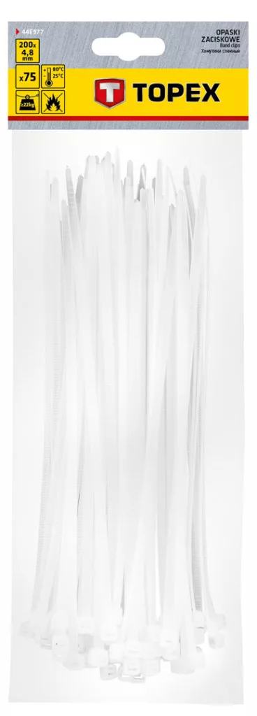 TOPEX Coliere cablu, 4,8mm x 200mm, alb, 75 buc 44E977