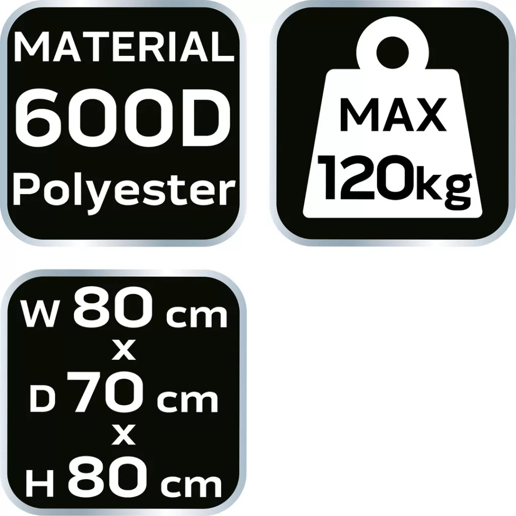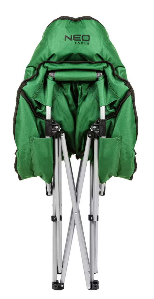 A NEO TOOLS scaun de drumeție pliabil este un scaun de camping practic, realizat din poliester 600D cu umplutură din spumă poliuretanică. Scaunul este rezistent la apă, fiind perfect chiar și pentru zile ploioase. Datorită cadrului din țeavă de oțel, scaunul poate fi folosit de persoane de până la 120 kg. Dimensiunile scaunului sunt: deschis - 80 x 70 x 80 cm, pliat - 92 x 28 x 21 cm. Deschiderea și plierea rapidă contribuie la confortul utilizării. Este oferit cu o husă din poliester dotată cu mâner și curea de umăr.