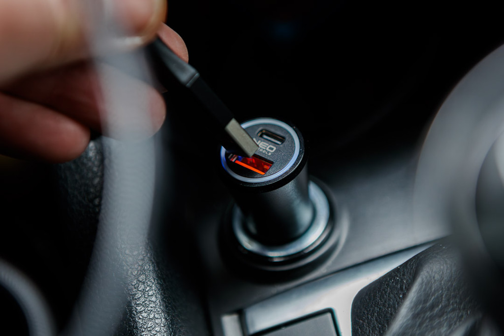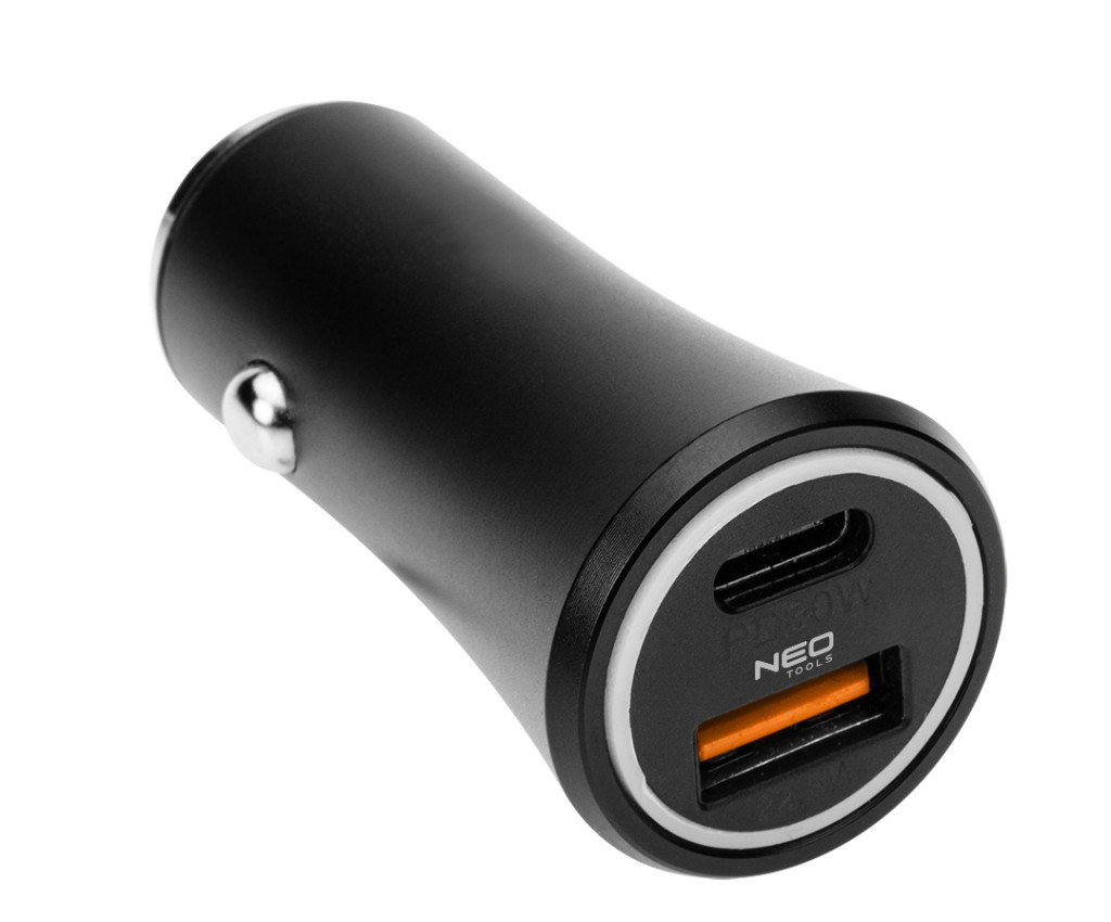 Adaptor USB auto NEO TOOLS, 12-24V, cu conectori USB-A, USB-C GD036