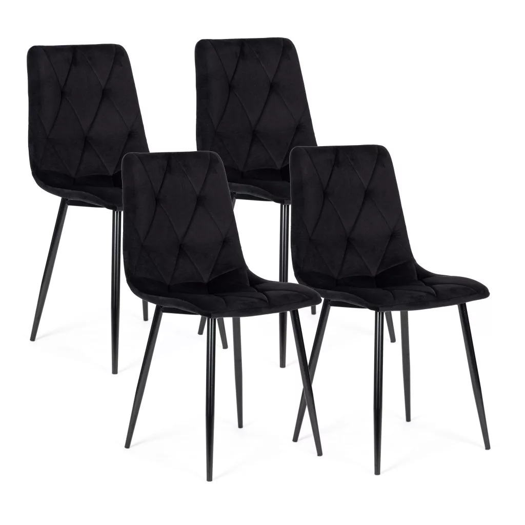 4 scaune din catifea matlasată pentru sufragerie și living – negru