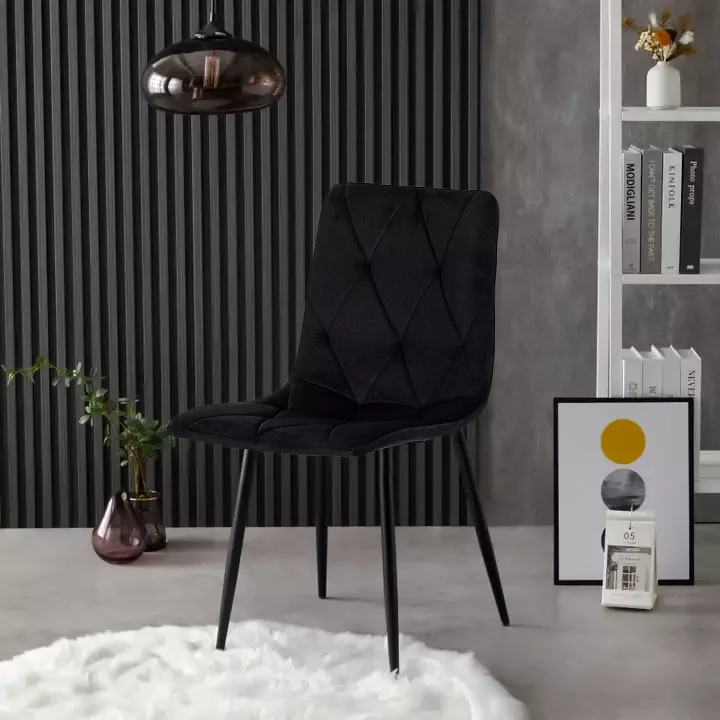 • Design – tapițeria din catifea neagră matlasată și picioarele din oțel oferă un aspect elegant și modern