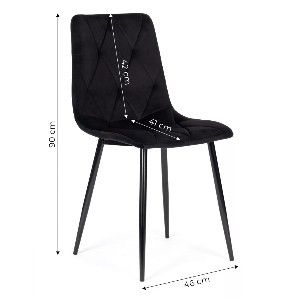 Scaunele se potrivesc perfect cu masa familiei din sufragerie, living sau chiar bucătărie. Tapițeria neagră este realizată din catifea rezistentă, iar forma sa simplă adaugă un aspect stilat oricărei încăperi. Arată grozav în living, sufragerie, birou sau chiar în medii de restaurant. Designul modern și forma unică sunt alegerea perfectă chiar și pentru cei mai pretențioși utilizatori.