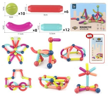 36 de piese magnetice, care pot fi amestecate și combinate pentru a crea cât mai multe construcții sau figurine! O adevărată activitate creativă și plină de idei.