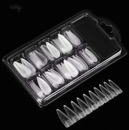 Cu acest set de tipsuri transparente pentru unghii false, poți crea unghii false durabile și frumoase pentru tine. Tipsurile sunt mate și transparente, astfel încât poți aplica orice culoare pe ele. Știm că fiecare are preferințe diferite, așa că sunt disponibile în 5 forme diferite: stiletto, balerină, rotundă, pătrată și migdală. Alege-ți preferata!