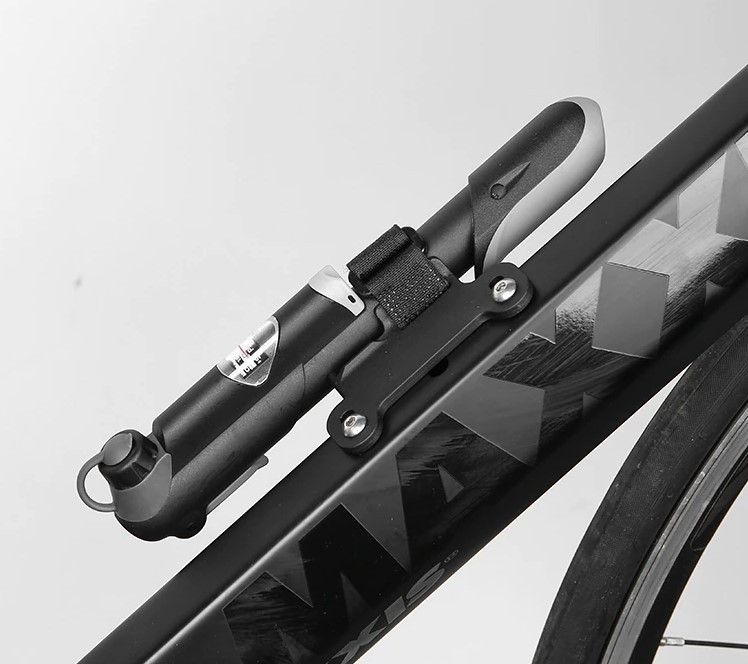 În pachetul pompei se află și un suport, cu ajutorul căruia poți fixa pompa ușor de cadrul bicicletei, dar datorită dimensiunii mici, se va potrivi perfect și în geanta ta.