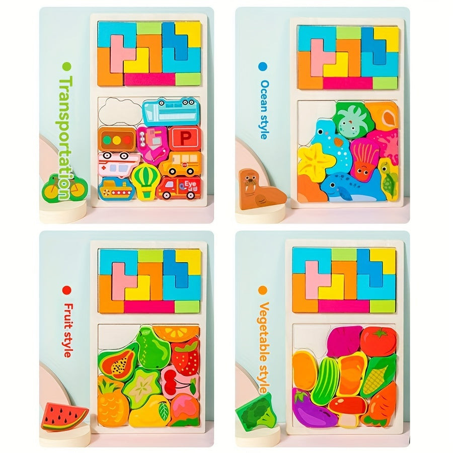 Descoperă lumea colorată a puzzle-urilor 3D din lemn, care îmbină perfect distracția cu învățarea! Acest joc educativ pentru copii nu doar că le dezvoltă inteligența, dar le stimulează și creativitatea. Combinația de forme și culori variate le permite copiilor să construiască și să creeze după propria lor imaginație. Acest puzzle nu doar că îmbunătățește gândirea logică, dar și abilitățile motorii fine, captând atenția celor mici ore în șir.