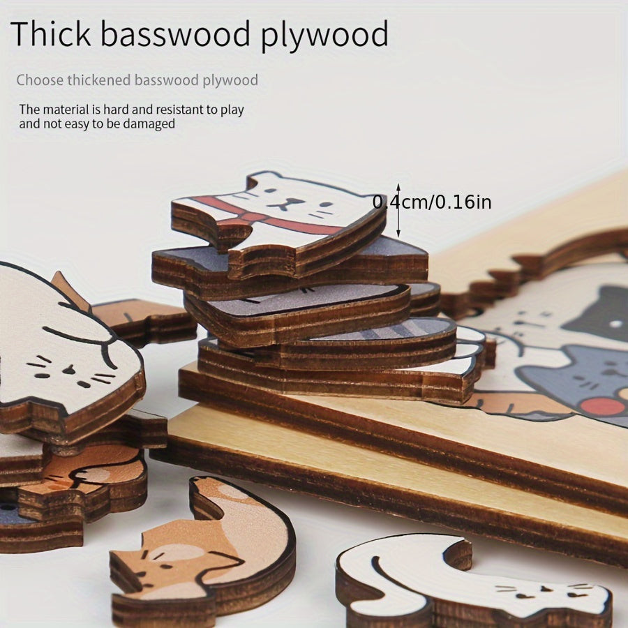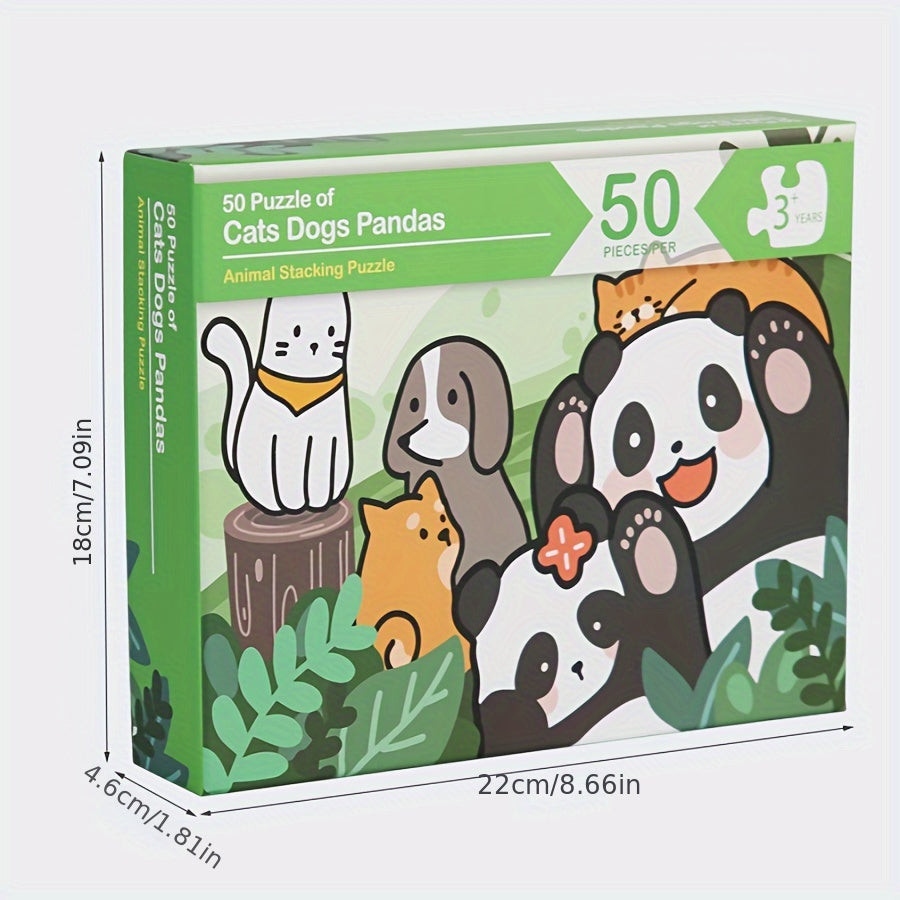 Puzzle din lemn de 50 bucăți, culori variate, design neregulat de câine, pisică, panda