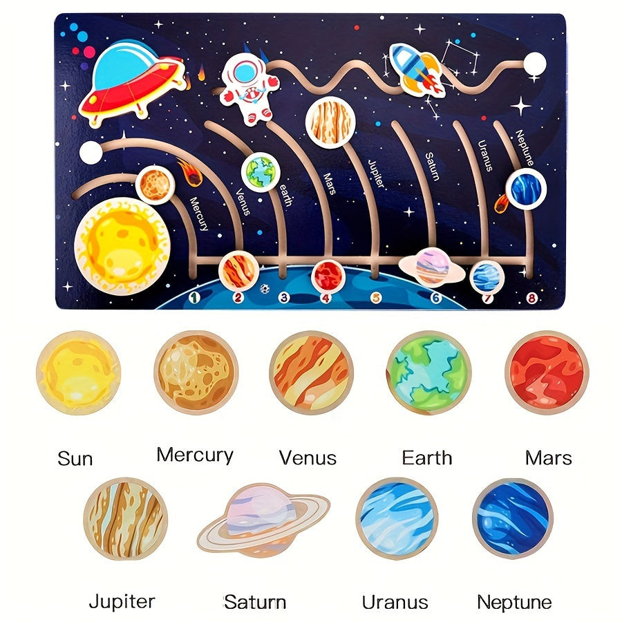 Dacă cauți un joc care să fie atât distractiv, cât și educativ, puzzle-ul cu planetele Sistemului Solar este alegerea perfectă. Copiii vor adora planetele colorate și detaliate, în timp ce învață despre spațiu fără să-și dea seama. Acest puzzle nu doar că dezvoltă gândirea logică și îndemânarea, dar trezește și interesul pentru explorarea spațiului. Fă timpul de joacă mai interesant și educativ cu acest puzzle special și urmărește cum copilul tău descoperă minunile Sistemului Solar!