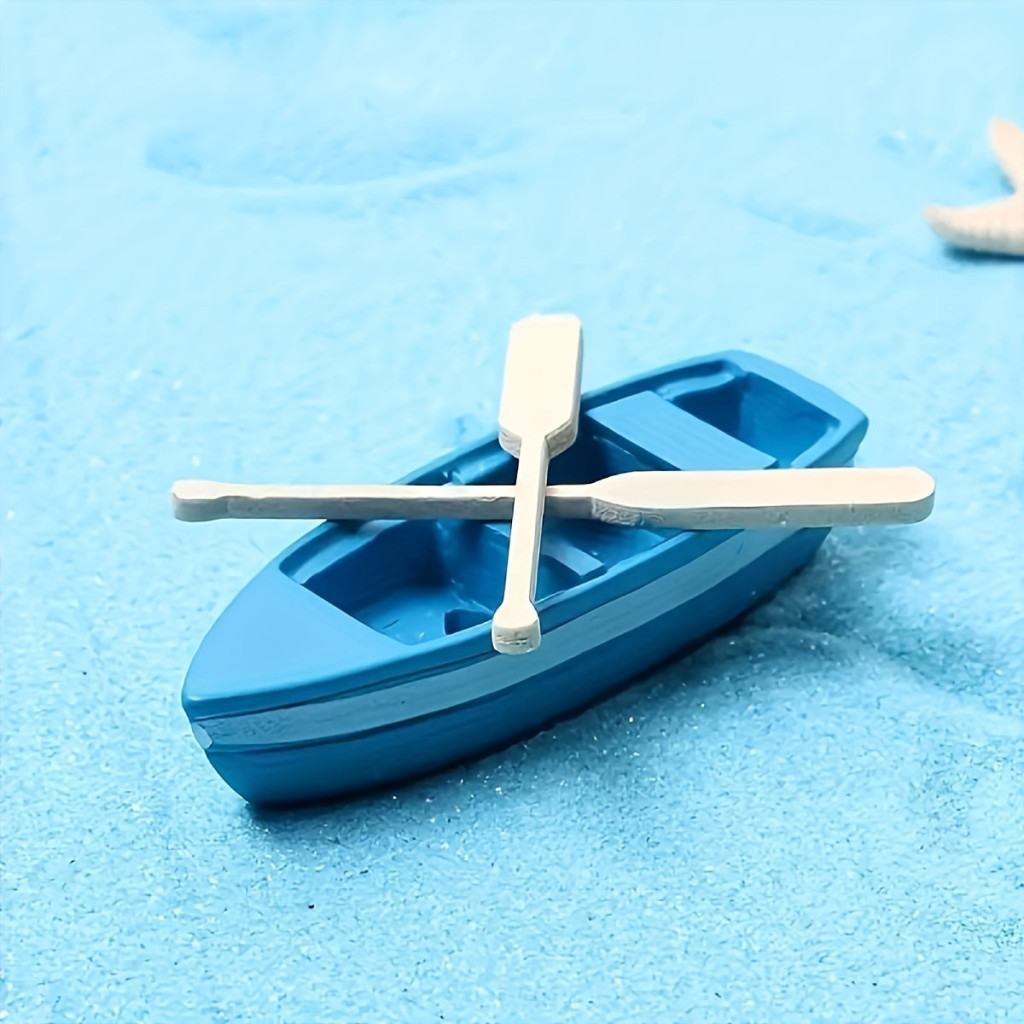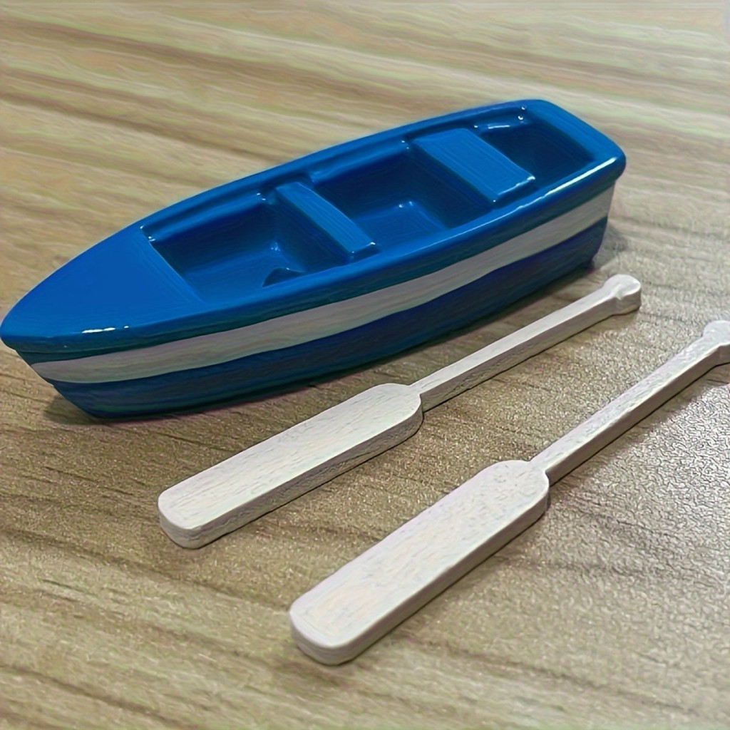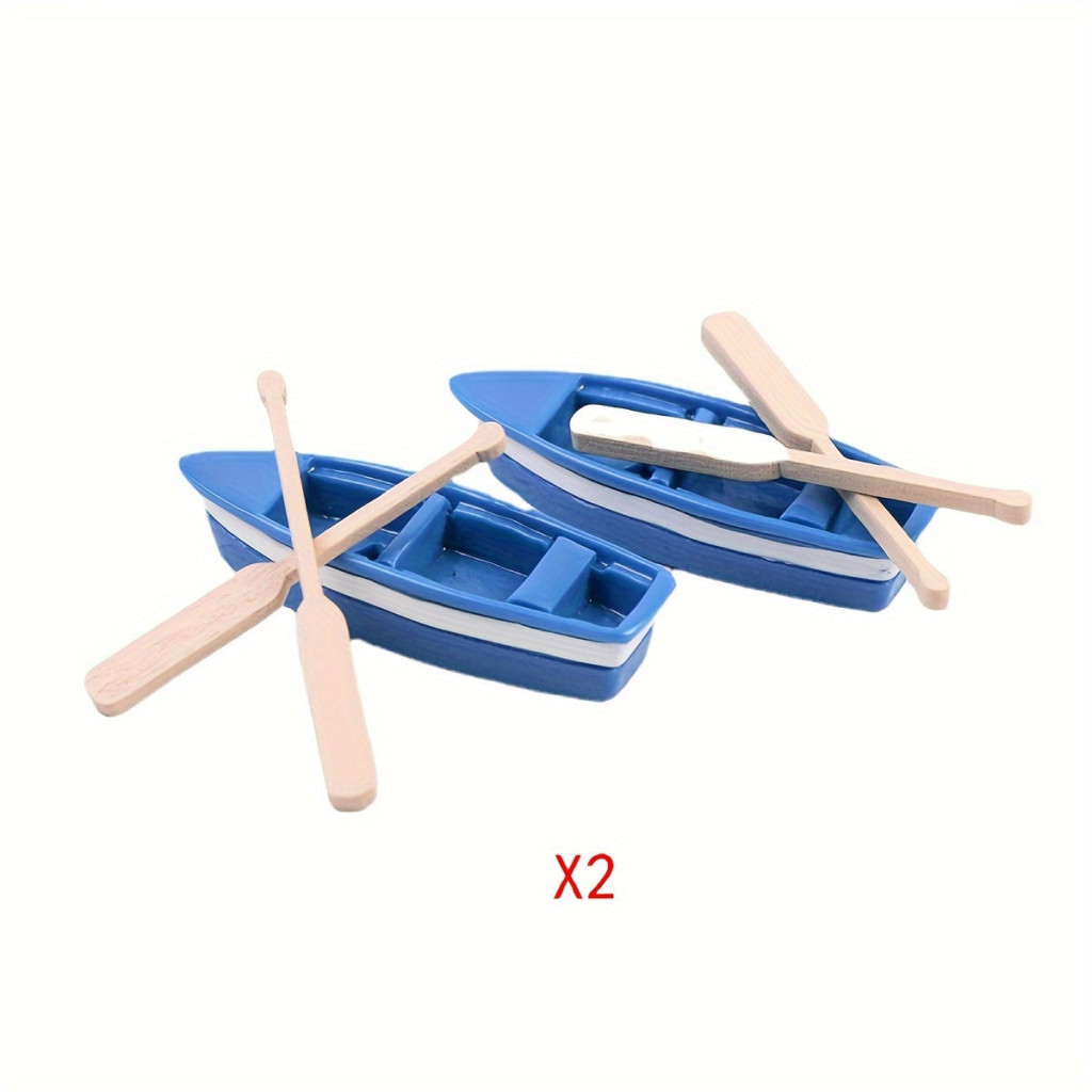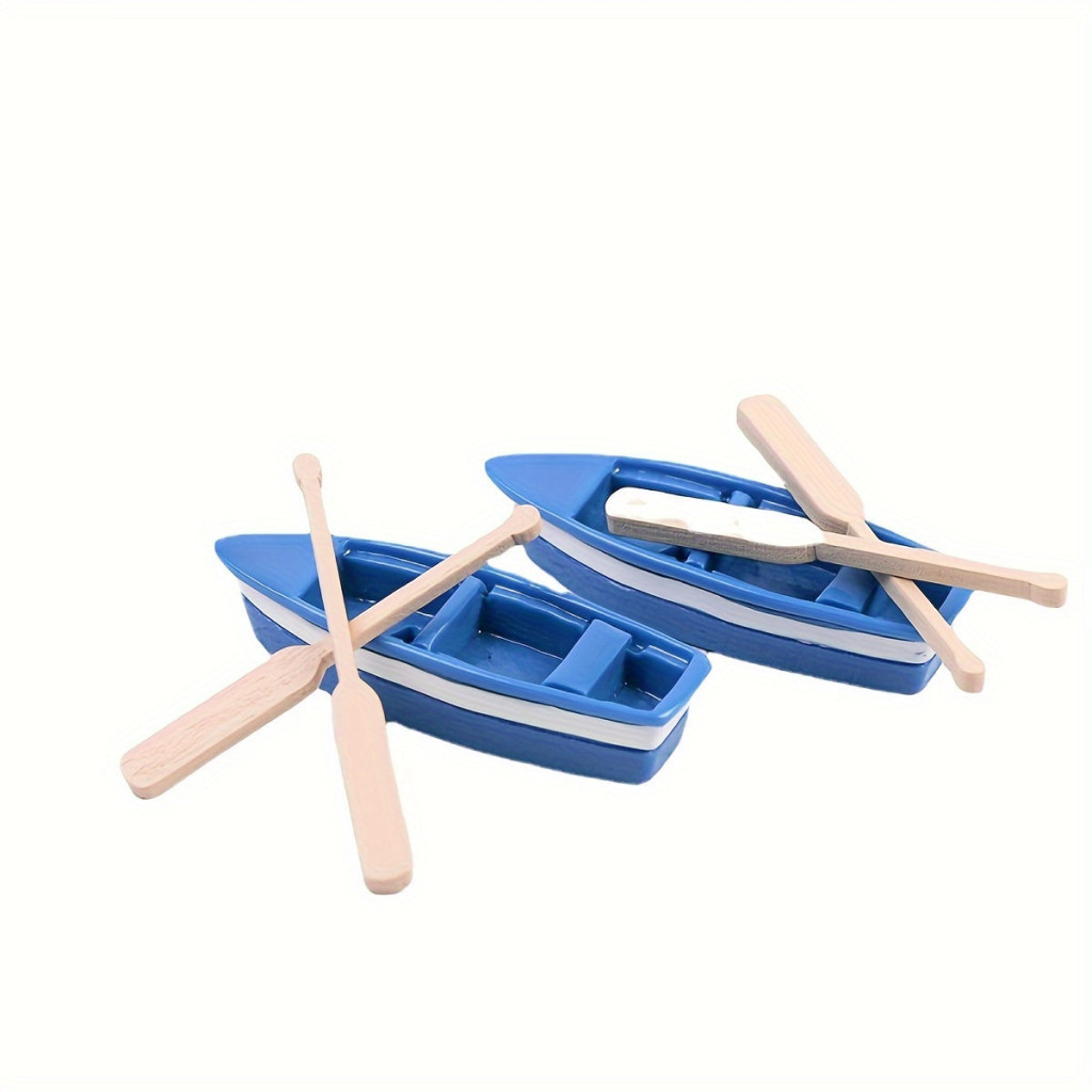 Set miniatură cu 2 bărci de pescuit cu vâsle din lemn, figurină barcă din rășină albastră
