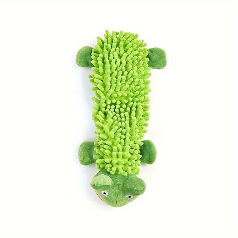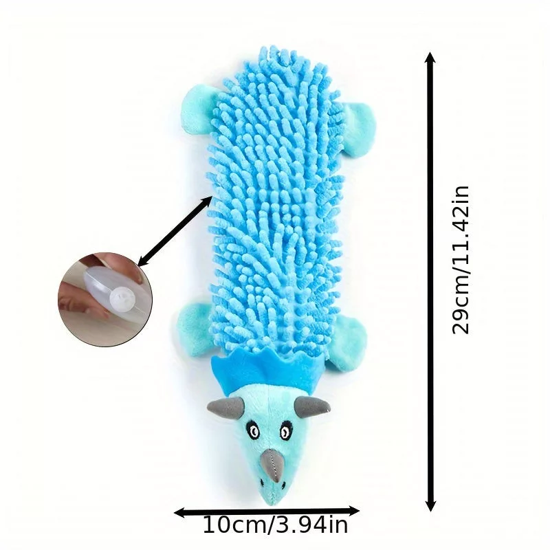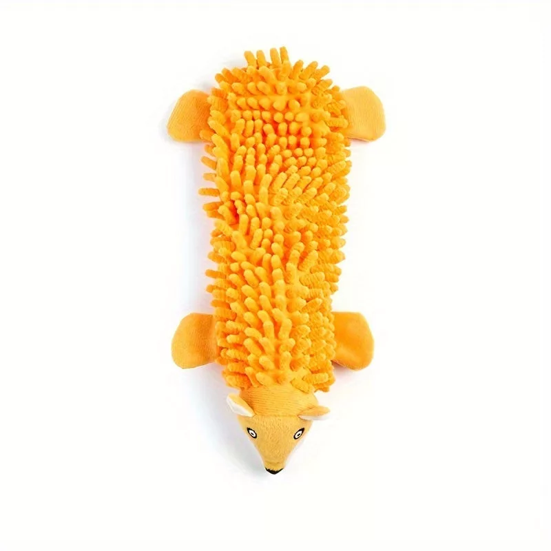 (Durabilă și sigură) Jucăria este realizată dintr-un material rezistent, care face față mestecatului, asigurându-i o durată lungă de viață. Materialul ușor de curățat permite jucăriei să rămână mereu proaspătă și igienică, fie că este folosită în interior sau exterior. Jucăria de pluș cu sunet este alegerea perfectă dacă vrei ca prietenul tău să fie activ și fericit.