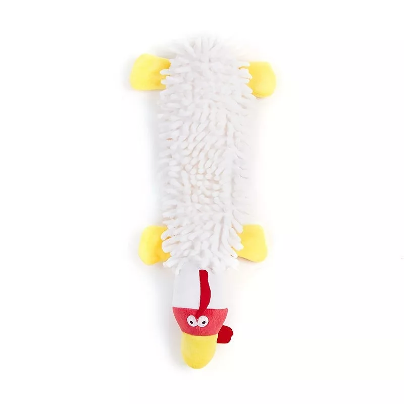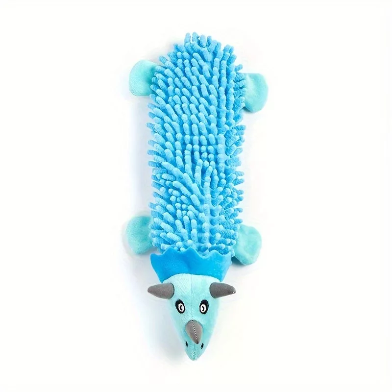 • (Material moale) Jucăria este confecționată din pluș moale, protejând dinții și gingiile câinilor în timpul jocului.