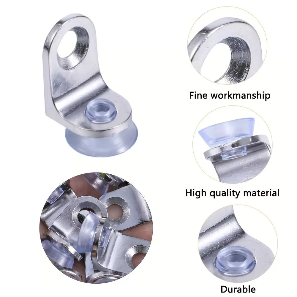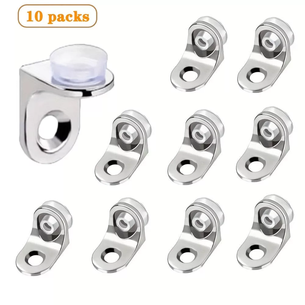 Set de 10 suporturi metalice pentru rafturi cu ventuză pentru sticlă și lemn