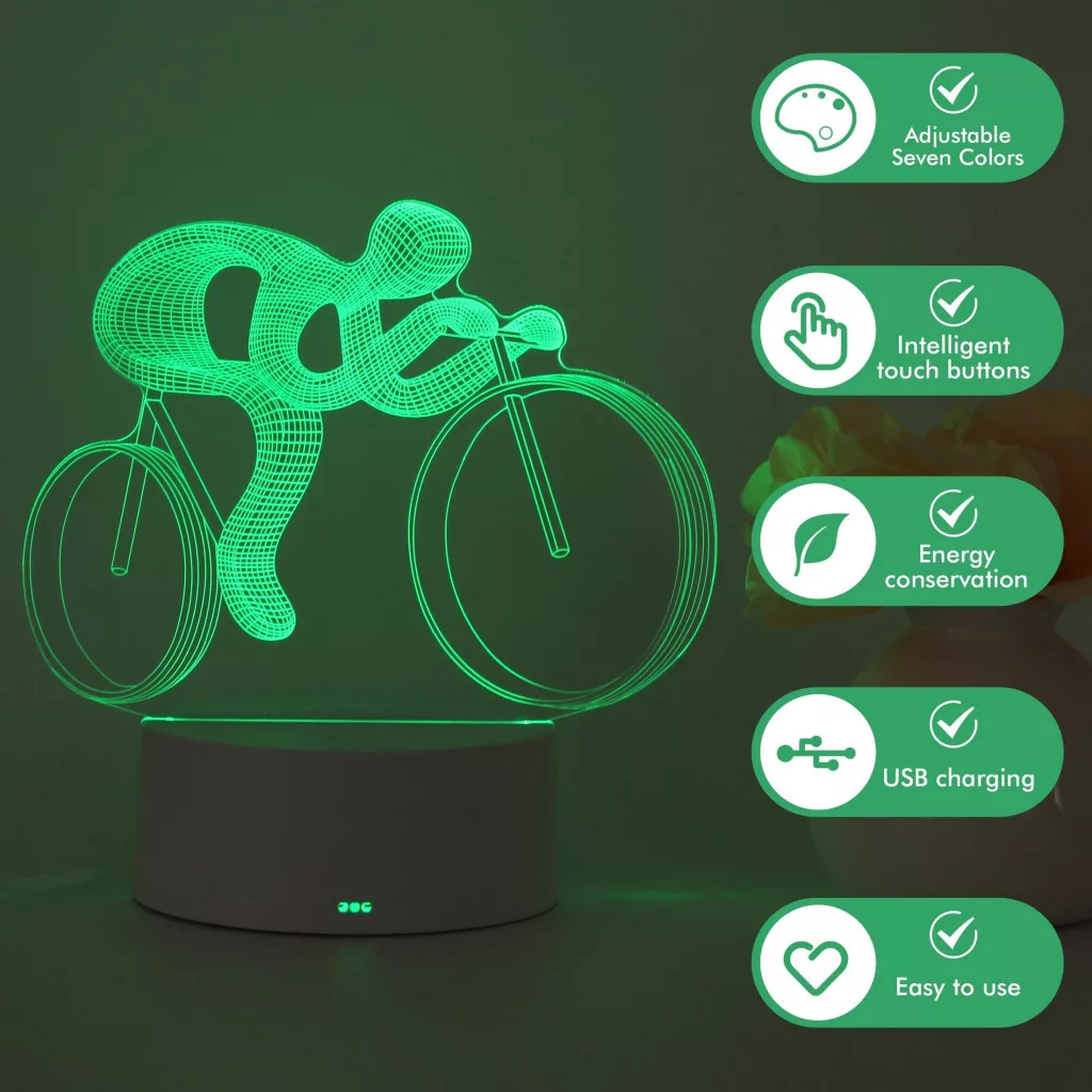Lumină de noapte LED pentru bicicletă de munte 3D, cu intensitate reglabilă