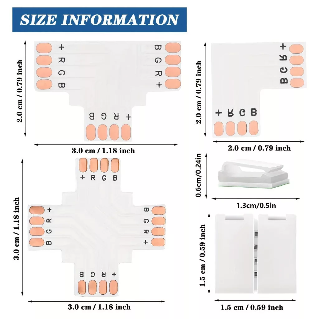 (Design și compatibilitate) Designul compact al conectorului îți permite să-l ascunzi aproape oriunde, astfel încât aspectul general al decorațiunii tale să rămână nealterat. Este compatibil cu majoritatea benzilor LED RGB, așa că nu trebuie să-ți faci griji cu privire la problemele de compatibilitate. Conectorul oferă o conexiune puternică și de încredere, astfel încât luminile să strălucească întotdeauna în culorile potrivite. Profită de oportunitatea de a adapta iluminarea la propriul tău stil și bucură-te de efectele de lumină unice!