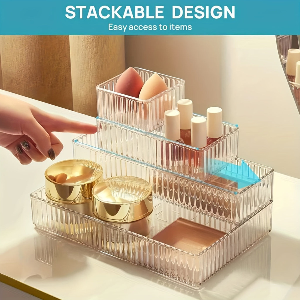 Descoperă noua casă a produselor tale de înfrumusețare cu tava organizatoare cosmetică din acril, stilată și practică! Acest design modern și simplu oferă soluția perfectă pentru organizarea machiajelor, cremelor și altor accesorii, astfel încât să găsești cu ușurință tot ce ai nevoie în fiecare dimineață. Datorită designului său transparent, poți vedea imediat conținutul, ceea ce îți simplifică rutina zilnică.