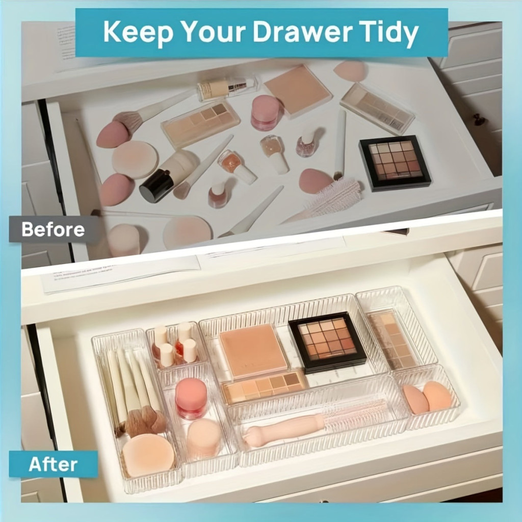 Dacă te-ai săturat ca pregătirea de dimineață să se transforme în haos și nu îți găsești niciodată rujul preferat, atunci această tavă organizatoare cosmetică din acril este perfectă pentru tine! Designul simplu și aranjarea practică asigură că toate produsele tale de înfrumusețare sunt ordonate și ușor accesibile. Nu mai pierde timp căutând și bucură-te de avantajele unei vieți organizate! Achiziționează-l acum și experimentează cât de mult îți poate ușura viața de zi cu zi cu această soluție stilată și practică.
