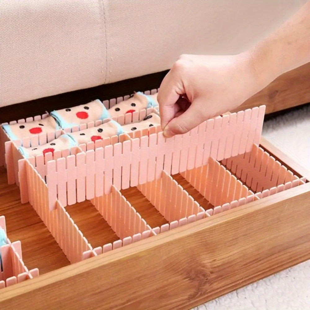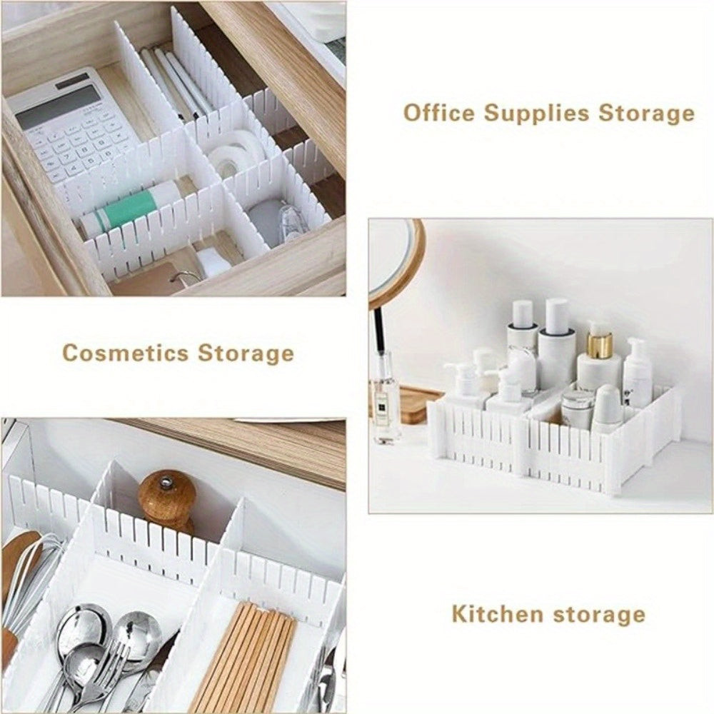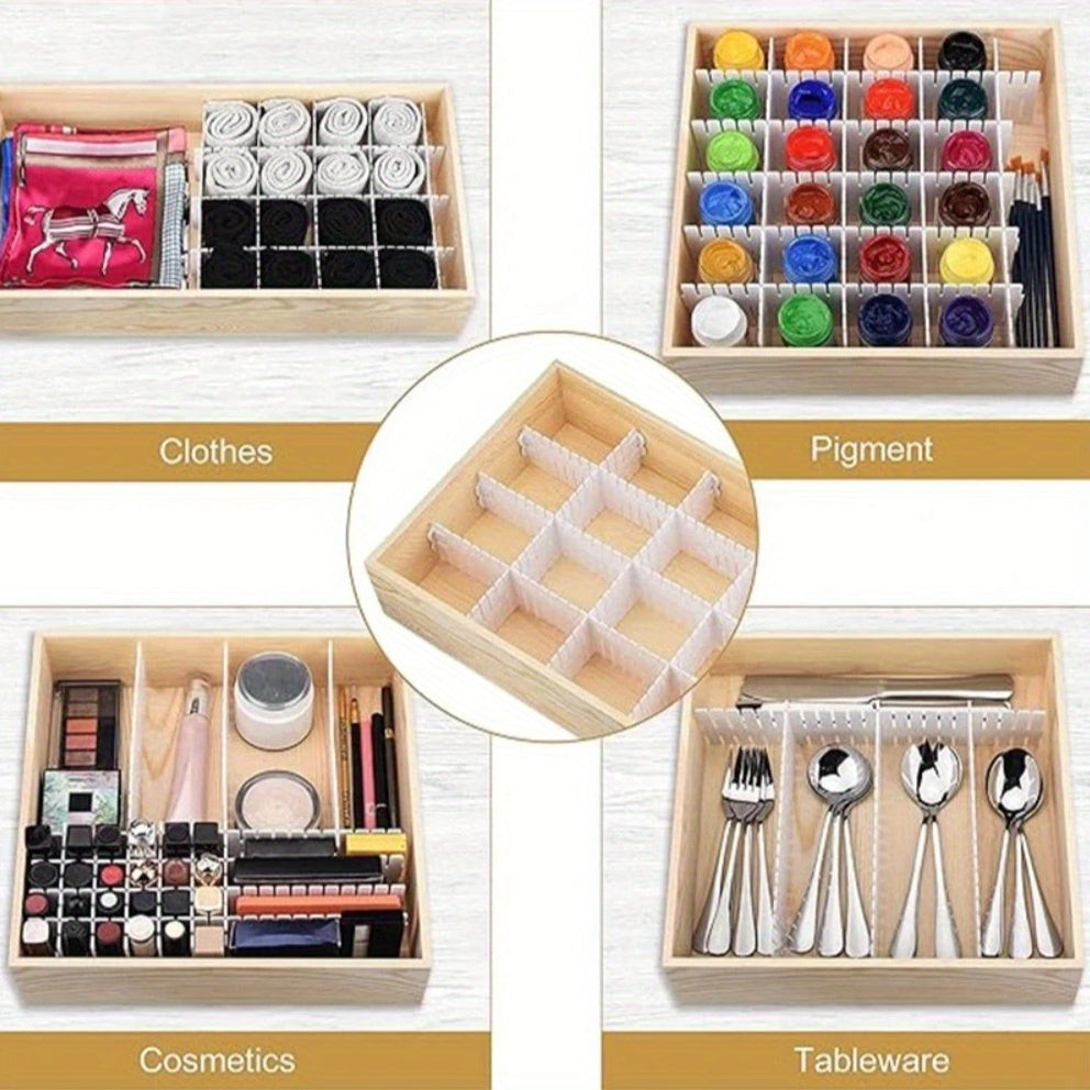 (Utilizare multifuncțională) Organizatorul de sertare nu doar că te ajută să menții ordinea, dar îți stimulează și creativitatea. Îl poți folosi pentru a depozita bijuterii, articole de birou sau chiar ustensile de bucătărie. Designul reglabil permite potrivirea cu orice sertar, fiind astfel utilizabil în orice încăpere a casei. Uită de căutări și dezordine și bucură-te de avantajele unei vieți organizate!